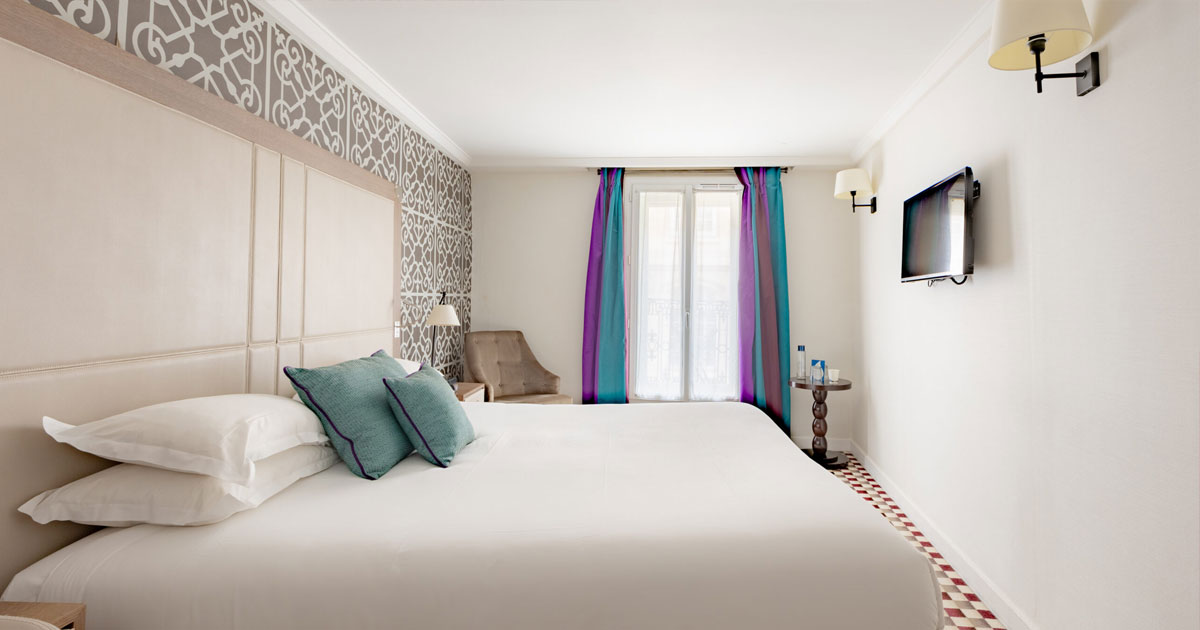 Dans un décor chic et décontracté, les chambre Deluxe vous offrent une belle surface de 18m2 et le privilège de se prélasser sur son balcon donnant sur rue.